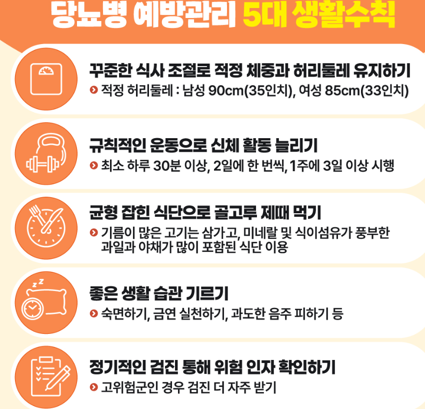- 매년 혈당 검사 (특히 고위험군)