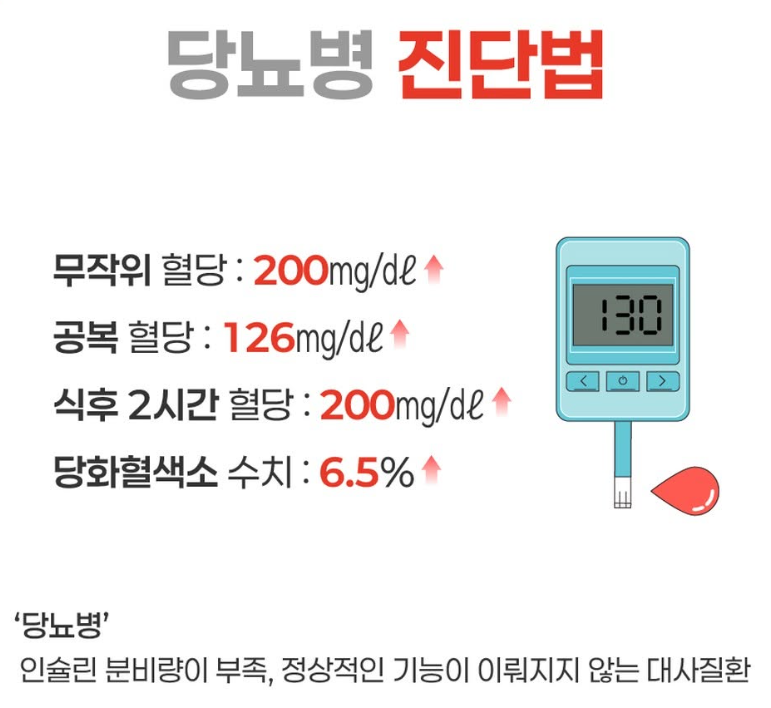- 공복 혈당 126mg/dL 이상 (8시간 공복 시)