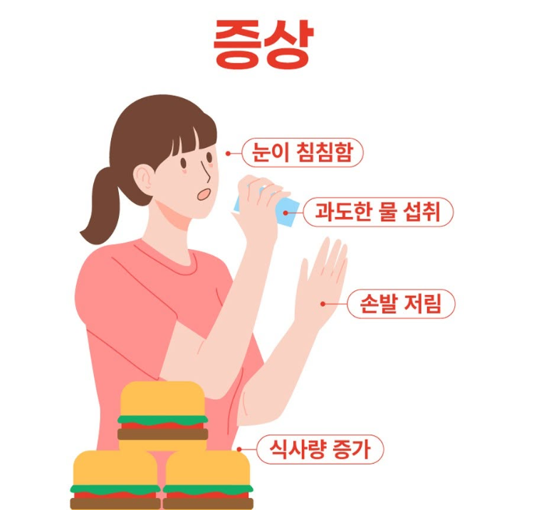 - 체중 감소, 피로감, 시야 장애, 손발 저림