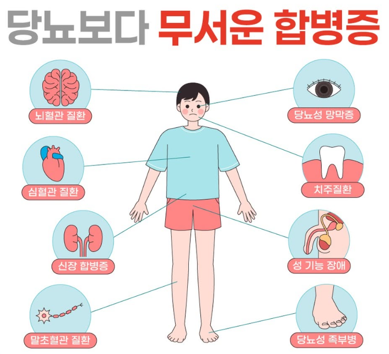 - 대혈관 합병증: 심근경색, 뇌졸중, 말초동맥질환